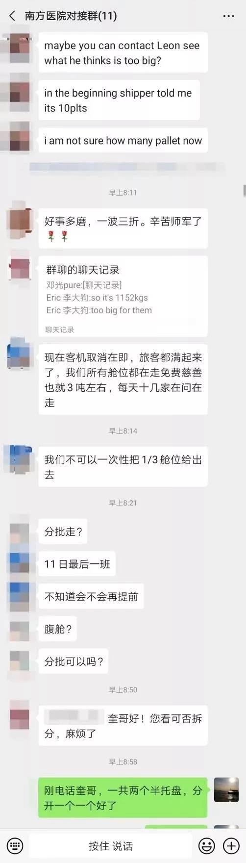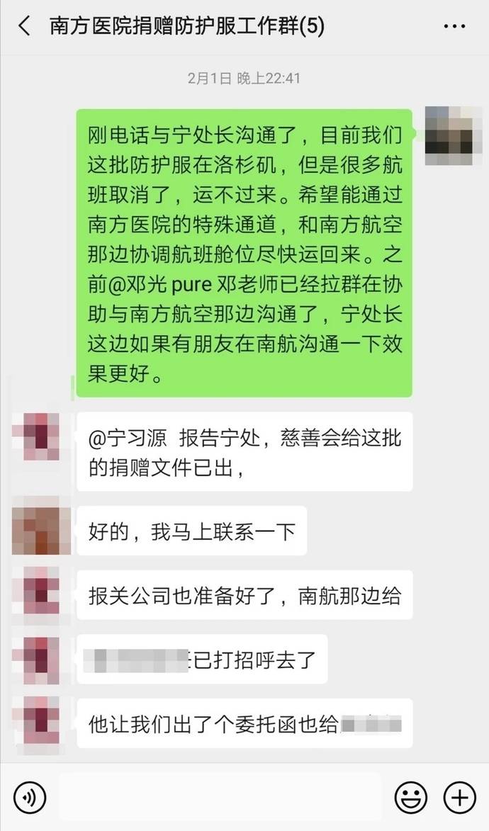南方医院与南方航空有特殊通道优先运输医疗捐赠物资,宁处长紧急帮忙联络了南航相关负责人协调舱位资源。